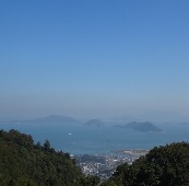 山の上から瀬戸内海の島々を眺め、遍路小屋でお菓子とハーブティーを頂く。