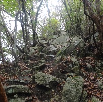 最後の難所には相応しいが、女体山では絶対に転がりたくはない、慎重に歩みを進める。