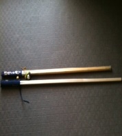 1番札所霊山寺に着き、お礼参りをしてから新品の杖と並べ、自分の杖の長さを計ってもらうと11.5センチも減っている。