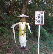徳島では交通案内やこう言った表示をする時に「同行二人」の遍路案山子が立っている場合が多い。